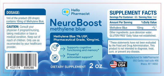 HelloPharmacist NeuroBoost Methylene Blue 1% - 2 Ounces