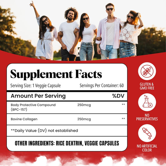 HelloPharmacist BPC 157 Peptide (Body Protective Compound 157) With Added Bovine Collagen - 60 Capsules - ISO Lab Certified