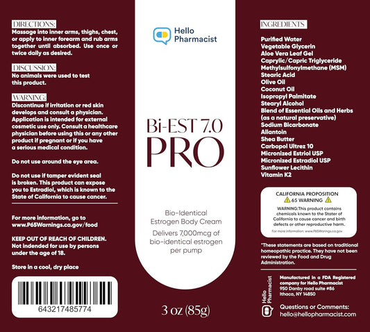 HelloPharmacist Bioidentical Bi-EST PRO 7.0 (Max Professional Strength 7mg Per Pump) Estrogen Cream for Women - Preserved with Essential Oils & Herbs - Additional Moisturizers - (3 oz/85g)